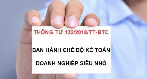 Thông tư 132/2018/TT-BTC Chế độ kế toán Doanh nghiệp siêu nhỏ Ngày 28/12/2018 Bộ tài chính ban hành Thông tư 132/2018/TT-BTC Hướng dẫn Chế độ kế toán cho doanh nghiệp siêu nhỏ, có hiệu lực thi hành kể từ ngày 15/02/2019, áp dụng cho năm tài chính bắt đầu hoặc…